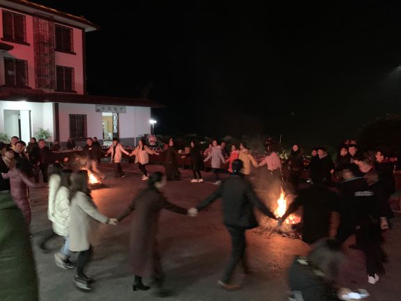 最后大家手牽著手,伴隨著《紅紅的古藺凱旋的城》圍著篝火跳起了舞,整個(gè)活動(dòng)現(xiàn)場(chǎng)熱鬧非凡,笑聲一浪高過(guò)一浪。